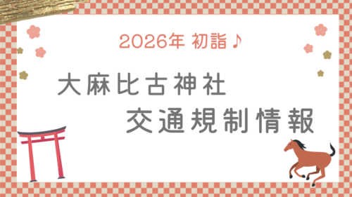 2026年(令和8年)の初詣も、大麻比古神社周辺では、交通規制が実施されます。お車でお出掛けの方は、事前にご確認のうえ、余裕をもってお越しください。交通規制情報下記案内図で、駐車場、右折禁止、進入禁止、通行禁止、一方通行等、事前にご確認下さ...