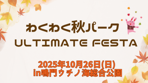 今年のわくわく秋パークは、ULTIMATE FESTAと同時開催!秋の魅力を丸ごと楽しめるイベント【わくわく秋パーク】が、今年も鳴門ウチノ海総合公園で開催されます✨さらに今年は【ULTIMATE FESTA】との同時開催で、パワーアップした...