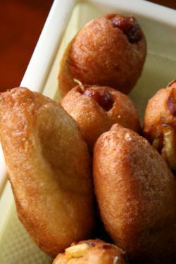 そんな数あるお総菜の中で、一際目を引くのが[とうふドーナツ](70円)! 豆腐を練り上げ砂糖をプラスした生地を作り、油で揚げたドーナツは、少々滑らかでふわっとした食感がクセになるお味。小麦粉や卵を一切使用していないそう。原材料が豆腐のためか、冷やしても固くならずに美味しくいただけます。