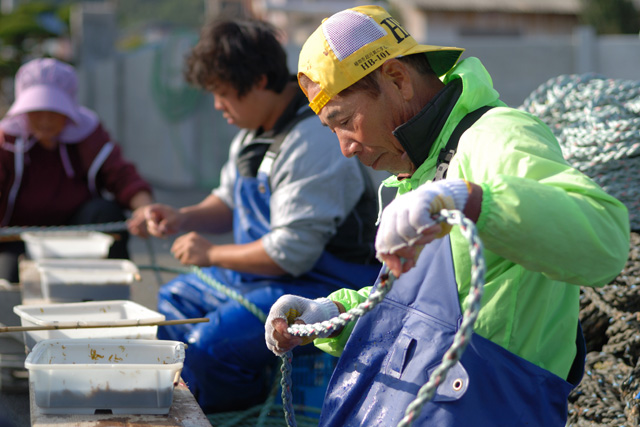三陸わかめの種を鳴門海峡で養殖する実験中。
