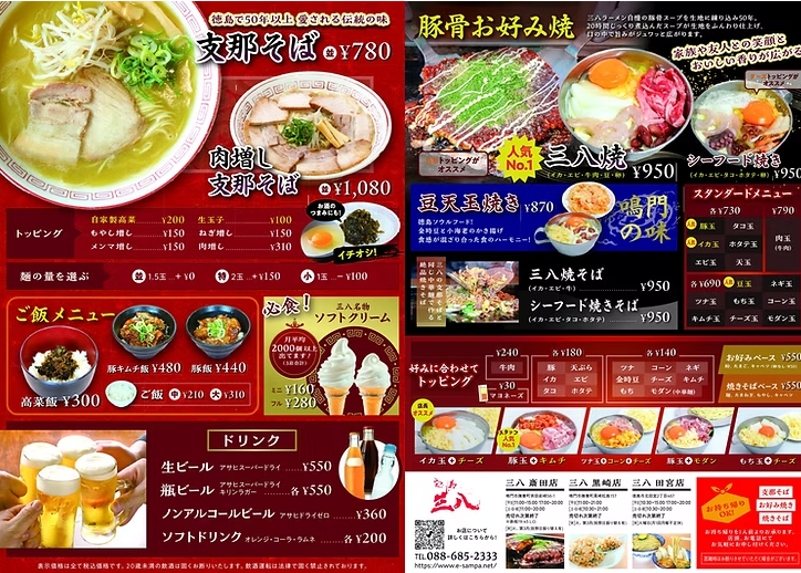 ・三八焼きそば(イカ・エビ・牛肉) | 950円 |