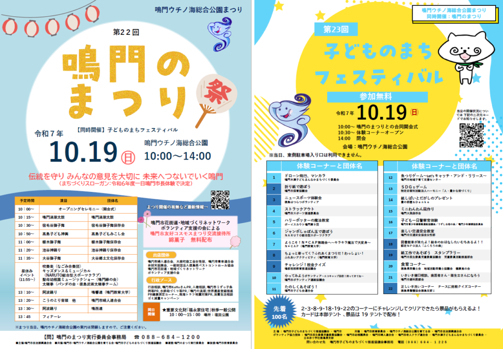 「第22回 鳴門のまつり」と「第23回 子どものまちフェスティバル」が同日行われ、子どもから大人まで一日中楽しめる内容となっています😊