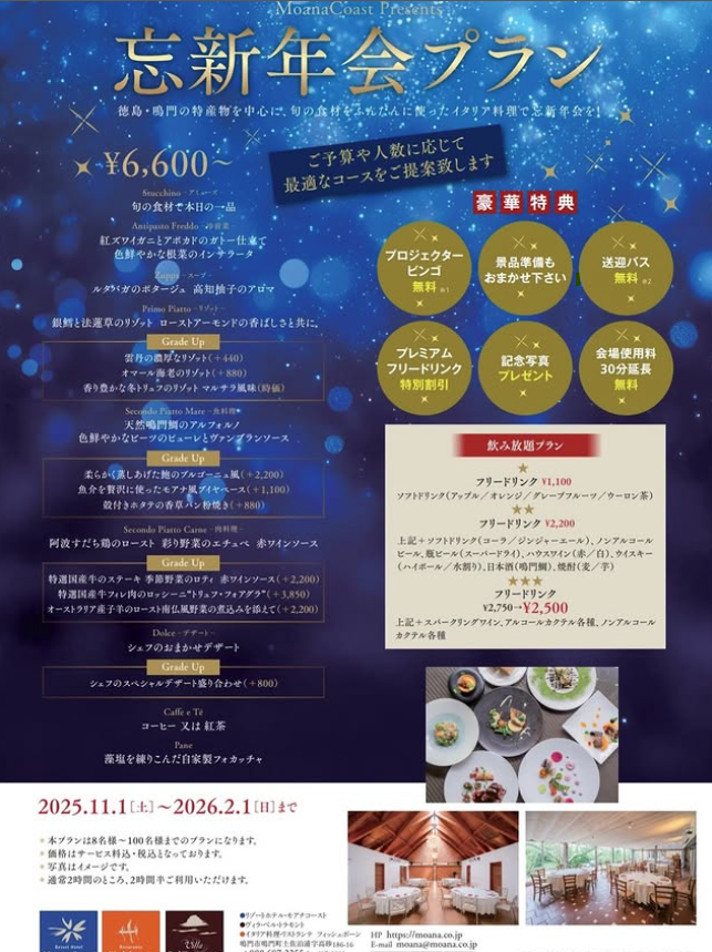 リゾートホテルモアナコーストさんの“忘新年会プラン”のお知らせです✨
