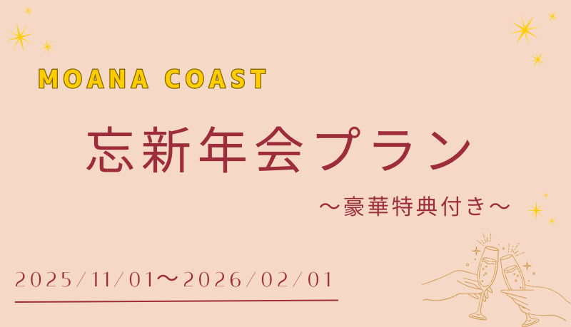 今年の締めくくりや新年のスタートを、モアナコーストさんの特別な忘新年会プランで彩りませんか?🥂✨