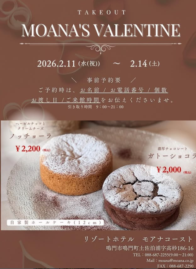 毎年恒例、モアナコーストさんのバレンタインシーズン限定“自家製ホールケーキ”のご予約が始まりました✨