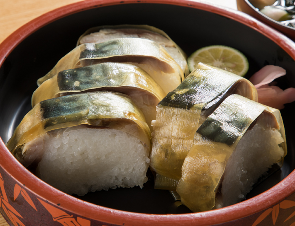鳴門の新鮮なサバを使用した棒寿司は、昆布の香りが豊かに広がる一品。