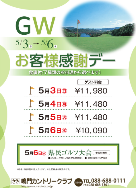 5月6日(水) 県民ゴルフ大会開催(参加無料)