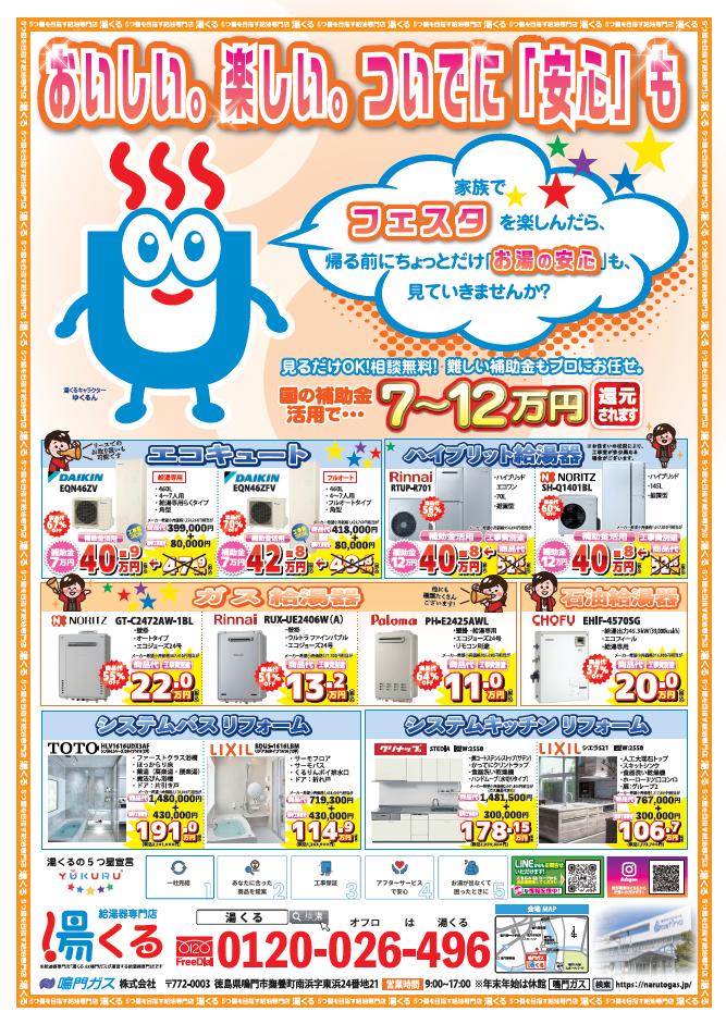 ご家族でフェスタを楽しんだあとは、帰る前にちょっとだけ「お湯の安心」も見ていきませんか?