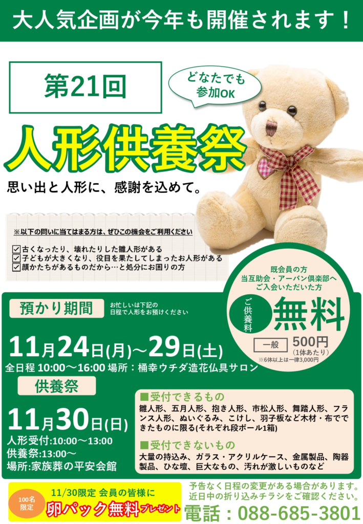 【桶幸アーバングループ】第21回人形供養祭開催のお知らせ