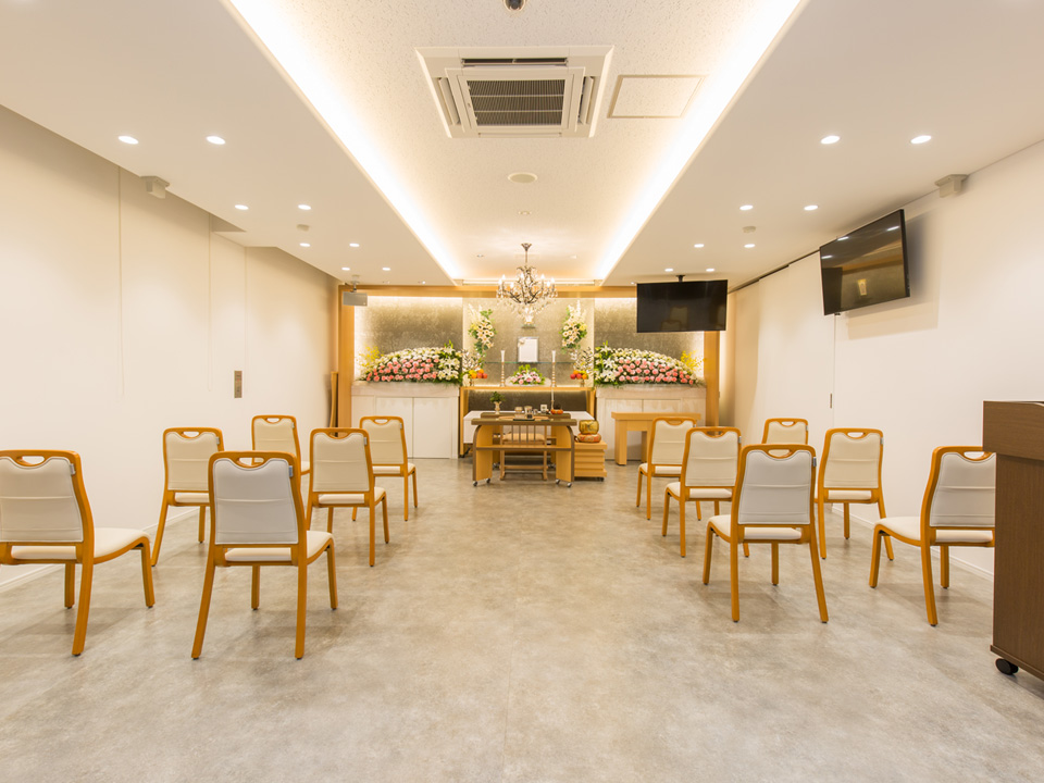 1日1件貸切、50名まで対応可能な家族葬式場です。