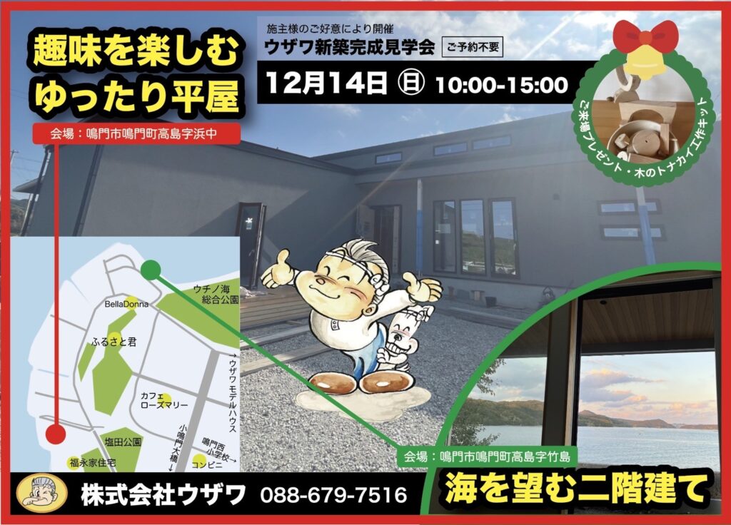 そんなウザワさんから12月14日の新築完成見学会のご案内です。